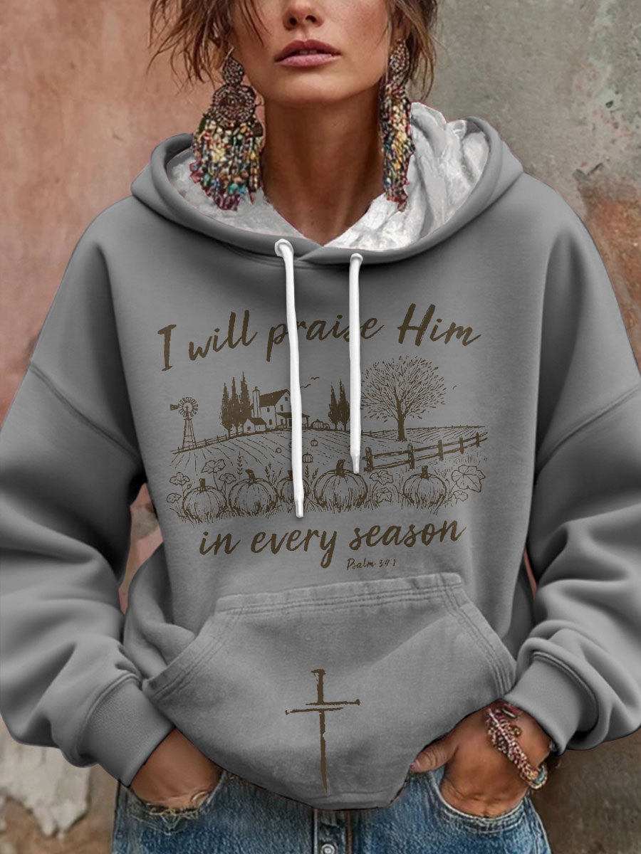 Women's Thanksgiving Autumn Pumpkin Faith Printed Hoodie