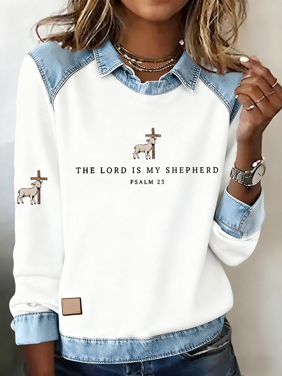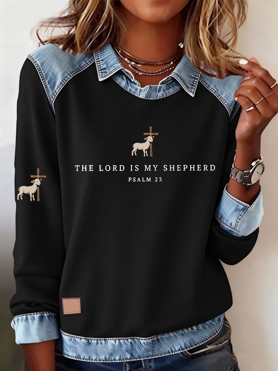 Women's The Lord Is My Shepherd Cross Print Casual Top