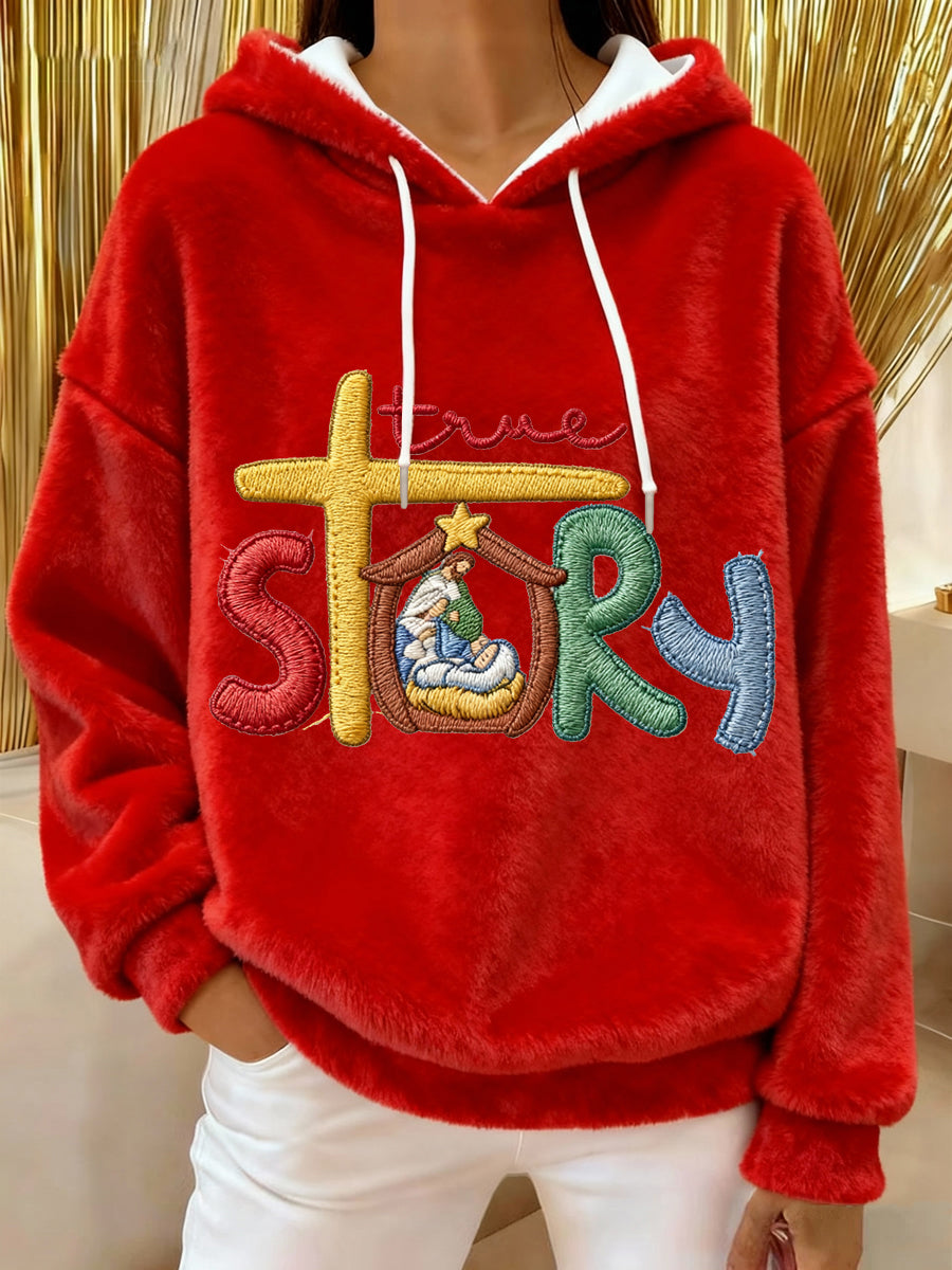 Women's True Story The Greatest Gift Of All Jesus Nativity Christian Christmas Flannel Hoodie