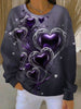 Women's Vintage Purple Floral Art Print Ribbed Round-Neck Sweatshirt